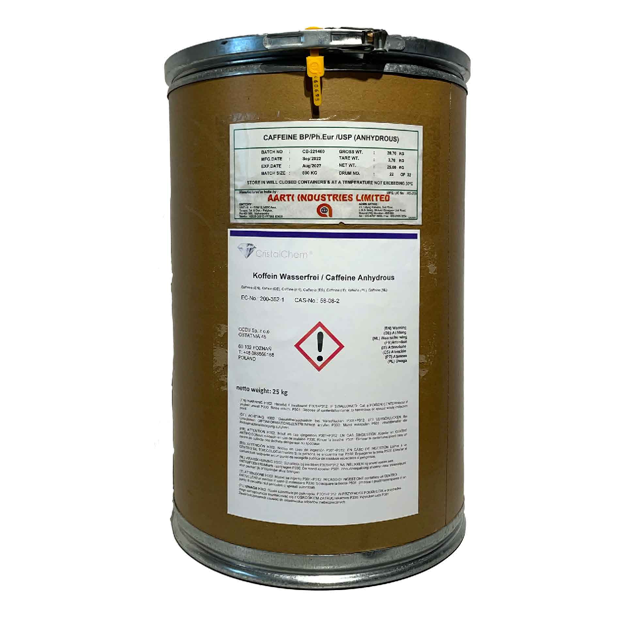 [Açıklama] Kafein, kahve ve çayda yaygın olarak bulunan bir pürin alkaloididir. Çeşitli in vivo çalışmalar, kafeinin topikal ve oral uygulamasının çeşitli mekanizmalar yoluyla fotokoruyucu bir etki gösterdiğini göstermiştir. Spesifik olarak kafeinin, normal dokuyu korurken DNA hasarlı epidermal hücrelerde ve tümörlerde apoptozu indüklediği gösterilmiştir. Fare modelleri, bu apoptotik etkinin, UV ile ilişkili cilt kanserlerinde yaygın olarak mutasyona uğrayan bir tümör baskılayıcı gen olan vahşi tip p53’ün artan ekspresyonuna ikincil olduğunu göstermektedir. Ayrıca kafeinin güneş kremi benzeri bir etkisi vardır ve UVB’nin neden olduğu timin dimerlerinin ve güneş yanığı cilt lezyonlarının oluşumunu engeller. [Kimyasal Özellikler] Kafein alkaloid 1,3,7-trimetilksantindir. Kahve tohumlarında (Coffea arabica L.) %1,5’e kadar, çay yapraklarında (Camelia sinensis) ise %5’e kadar bulunan ksantin türevlerinden biridir. Bu bitkilerden yapılan içeceklerin bir bileşenidir. Kafein aynı zamanda çikolatanın (Theobroma cacao) ve ekstraktı kola içeceklerinde kullanılan kola cevizinin (Cola acuminata Schott ve Endel. ve ilgili türler) bir bileşenidir. Neredeyse kokusuzdur. Kafein, kola türü içeceklere lezzeti arttırmak için eklenir. Hafif ve bilinçaltı tatlar tüketiciler tarafından geniş çapta takdir edilmektedir ve kafein, içeceğin diğer bileşenleri üzerinde değiştirici bir etkiye sahiptir. Sıvı gıdalardaki kafeinin varlığını tespit etmeye yönelik eşik, mevcut diğer maddelerin yapısına bağlı olarak değişir ancak halihazırda üretilen kola tipi içeceklerin seviye karakteristiğine yakındır. Sudaki kafeinin tespit edilmesine yönelik eşiğin %0,0095 olduğu gösterilmiştir; sıvı gıdalarda %0,0184. Bir çalışmada panelistler %0,0058 kafein içeren bir solüsyonu kontrolden ayırt edebildiler. Sulu bir kafein çözeltisi ile bir su kontrolü arasındaki tat farkını tespit etme eşiğinin de %0,005 kafein olduğu ve acıyı ayırt etmek için %0,011 kafein olduğu gösterilmiştir. Kafein, sükroz, sitrik asit ve tuzun eşik ve eşik altı konsantrasyonlarını içeren sulu çözeltilerde tüm bileşikler birbirinin tat yoğunluğunu bastırdı. [Fiziksel özellikler] Görünüm: beyaz veya biraz sarımsı yeşil renkte kokusuz ipeksi iğne benzeri kristal veya kristal toz. Çözünürlük: hava koşullarına dayanıklı, su veya kloroformda kolayca çözünür ve su, etanol veya asetonda az çözünür, eterde çok az çözünür. Erime noktası: 235–238°C. [Güvenlik Profili] Yutma yoluyla insan zehiri. Yutularak, deri altı, periton içi, kas içi, rektal ve intravenöz yollarla deneysel bir zehir. İnsandaki sistemik etkiler: ataksi, kan basıncında yükselme, kalp atış hızında değişiklik, tübüllerde değişiklikler, konvülsiyonlar veya nöbet eşiğinde etki, susuzluk, çarpık algılar, halüsinasyonlar, hipermotilite, kas kasılması, kas-iskelet sistemi tümörleri, bulantı veya kusma, toksik psikoz, titreme. Kraniyofasiyal ve kas-iskelet sistemlerinde gelişimsel anormalliklere, hamileliğin sonlanmasına (kürtaj) ve ölü doğuma neden olan bir insan teratojenidir. İnsandaki annelik etkileri, doğum veya doğum üzerinde belirtilmemiş bir etkiyi içerir. İnsan mutasyon verileri bildirildi. Deneysel bir teratojen. Diğer deneysel üreme etkileri. Deneysel kanserojen verilerle şüpheli kanserojen. Büyük dozlar (1.0 g’ın üzerinde> çarpıntı, heyecan, uykusuzluğa, baş dönmesine, baş ağrısına ve kusmaya neden olur. Çay veya kahvede kafeinin aşırı kullanımı sindirim bozukluklarına, kabızlığa, çarpıntıya, nefes darlığına ve depresif zihinsel durumlara yol açabilir. bu koşullar altında kalp bozukluklarına da yol açmaktadır. Ayrışıncaya kadar ısıtıldığında toksik NOx dumanları yayar. [Sağlık Tehlikesi] Kafein, merkezi sinir sistemini uyaran bir maddedir. Yorgunluğu ve uyuşukluğu ortadan kaldırır. Ancak yüksek dozlar gastrointestinal motiliteye, huzursuzluğa, uykusuzluğa, sinirliliğe ve titremeye neden olur. Akut zehirlenme etkileri bulantı, kusma, baş ağrısı, heyecanlanma, titreme ve bazen de konvülsif komayı içerir. Diğer semptomlar solunum depresyonu, kas kasılması, çarpık algı ve halüsinasyon olabilir. 15-20 gramın yutulması insanlar için ölümcül olabilir..LD50 değeri, ağızdan (fareler): 127 mg/kg. LD50 değeri, ağızdan (tavşanlar): 224 mg/kg. Hayvan çalışmaları, yüksek dozlarda kafeinin üreme üzerinde olumsuz etkiler oluşturduğunu ve gelişimsel anormalliklere neden olduğunu göstermektedir. Histidin reversiyon-Ames ve TRP reversiyon testlerinde negatif sonuç verdi.