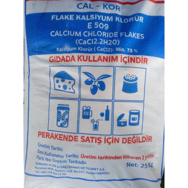 [Görünüş] Kalsiyum klorür, renksiz ila beyazımsı kristalli bir katıdır ve erimiş haldedir (suyu emer). Isıtıldığında, kristaller 100 C’de su kaybeder. [İlk yardım] Bu kimyasal göze kaçarsa, kontakt lensleri hemen çıkarın ve hemen en az 15 dakika yıkayın, ara sıra üst ve alt göz kapaklarını kaldırın. Derhal tıbbi yardım alın. Bu kimyasal ciltle temas ederse, kirlenmiş giysileri çıkarın ve hemen sabun ve su ile yıkayın. Derhal tıbbi yardım alın. Bu kimyasal solunmuşsa, maruziyetten uzaklaştırın, solunum durmuşsa kurtarıcı solumaya (evrensel önlemleri kullanarak, resüsitasyon maskesi dahil) başlayın ve kalp hareketi durmuşsa CPR’ye başlayın. Derhal tıbbi bir tesise transfer edin. Bu kimyasal yutulduğunda tıbbi yardım alın. Bol miktarda su verin ve kusturun. Bilinci yerinde olmayan kişiyi kusturmayın. [Uyumsuzluklar] Sudaki çözelti zayıf bir bazdır. Nem varlığında çinko ile reaksiyona girerek oldukça yanıcı hidrojen gazı oluşturur. Suda çok fazla ısı oluşturarak şiddetli bir şekilde çözünür. Su ile bağdaşmaz, brom triflorür; 2-furan, perkarboksilik asit. Nemin varlığında bazı inşaat malzemelerine ve metallere zarar verebilir. [Kimyasal Özellikler] Kalsiyum klorür, su emen (suyu emen) renksiz ila beyazımsı kristalli bir katıdır. Isıtıldığında, kristaller 100 C’de su kaybeder. [Biyolojik Fonksiyonlar] Kalsiyum klorür, biyokimyada yaygın olarak kullanılan bir reaktiftir. Kalsiyum, sinyal iletimi, kas kasılması ve hücre zarı ve hücre duvarı stabilitesinin korunması dahil olmak üzere birçok biyolojik süreçte önemli roller oynar. Biyolojik kalsiyumun deneysel ölçümüne ilişkin kapsamlı incelemeler yayınlandı. Kalsiyum klorür, yetkin E. coli’nin hazırlanmasında ve dönüştürülmesinde ve ökaryotik hücrelerin plazmit DNA veya yüksek moleküler ağırlıklı genomik DNA ile transfeksiyonunda kullanılır. E. coli’nin plazmit DNA pBR322 ile CaCl2 aracılı elektroporasyonu incelenmiştir. CaCl2 kullanan virüs vektörlerinin konsantrasyonu için bir protokol yayınlandı. CaCl2, Escherichia coli’den NADH-ubikinon oksidoredüktazın (kompleks I) stabilizasyonunda ve iki boyutlu kristalizasyonunda kullanılmıştır. Sodyum sitrat varlığında CaCl2 varlığında domuz pankreatik elastazın kristalleşmesi, proteinin metal bağlama bölgesinde kalsiyumun bağlanmasını ortaya çıkarır. Escherichia coli, çok kuyucuklu bir flüoresan deneyi ile incelenmiştir. [Kullanım Alanları] Kalsiyum klorür dihidrat, küçük pullar halinde kokusuz beyaz bir katıdır. Erimiş haldedir (havadaki nemi emer) ve ısı üreten suda (ekzotermik) hızla çözünür. Birçok endüstriyel uygulamaya sahiptir ve tozlanmayı önlemek, kurutma maddesi olarak ve buz eritmek için yaygın olarak kullanılır. Yüzme havuzlarında ve akvaryumlarda pH tamponu ve hızlı bir kalsiyum iyonu kaynağı olarak kullanılır. Kalsiyum Klorür genel amaçlı bir gıda katkı maddesidir, susuz form 0°C’de 100 ml suda 59 g çözünürlükle suda kolayca çözünür. Isının serbest kalmasıyla çözünür. Kalsiyum klorür dihidrat olarak da bulunur, 0°C’de 100 ml’de 97 g çözünürlükle suda çok çözünür. Konserve domates, patates ve elma dilimlerinde sıkılaştırıcı olarak kullanılır. Buharlaştırılmış sütte, sterilizasyon sırasında sütün pıhtılaşmasını önleyecek şekilde tuz dengesini ayarlamak için yüzde 0,1’den fazla olmayacak seviyelerde kullanılır. Turşularda iyiliği korumak için disodyum EDTA ile birlikte ve aljinatlarla reaksiyona girerek jel oluşturmak için kalsiyum iyonları kaynağı olarak kullanılır.