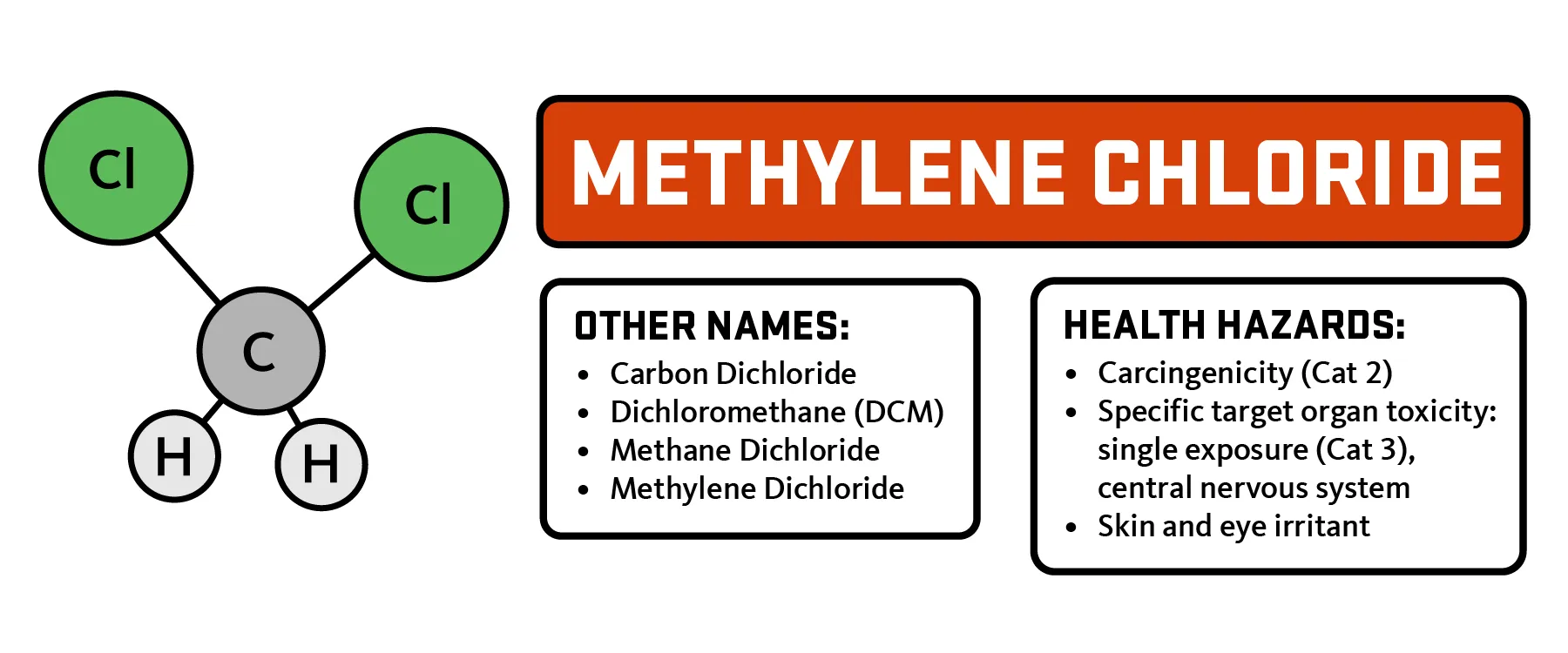 [Kimyasal Özellikler] Metilen klorür, hafif, tatlı bir kokuya sahip renksiz bir sıvıdır. Çevrede doğal olarak oluşmaz. Metan gazı veya odun alkolünden yapılır. Metilen klorürün endüstriyel kullanımları, boya sökücülerde bir çözücü olarak, aerosollerde bir itici gaz olarak ve ilaç imalatında bir proses çözücü olarak kapsamlıdır. [Görünüş] Metilen klorür, kloroform benzeri bir kokuya sahip, yanmaz, renksiz bir sıvıdır. 40 C/ 104 F üzerinde bir gaz. Koku, 250 ppm’de fark edilir. Ancak bu seviye, OSHA STEL’i önemli ölçüde aşmaktadır ve güvenli olmayan konsantrasyonlar için yeterli bir uyarı olarak kabul edilmemelidir. [Reaktivite Profili] DICHLOROMETAN(75-09-2) lityum, sodyum ve potasyum gibi aktif metallerle ve potasyum tert-butoksit gibi güçlü bazlarla kuvvetli reaksiyona girer. DİCHLOROMETAN(75-09-2) güçlü oksitleyiciler, güçlü kostikler ve alüminyum veya magnezyum tozları gibi kimyasal olarak aktif metaller ile geçimsizdir. Sıvı, bazı plastik, kauçuk ve kaplama biçimlerine saldıracaktır. Bu bileşik, sodyum-potasyum alaşımı, (potasyum hidrojen + N-metil-N-nitrosüre), nitrojen tetraoksit ve sıvı oksijen ile reaksiyona girer. DİKLOROMETAN(75-09-2) ayrıca titanyum ile reaksiyona girer. Su ile teması halinde DICHLOROMETAN(75-09-2) demiri, bazı paslanmaz çelikleri, bakır ve nikeli aşındırır. DİKLOROMETAN(75-09-2) alkali metallerle uyumsuzdur. DİKLOROMETAN(75-09-2) aminler, çinko ve alüminyum, magnezyum ve çinko alaşımları ile bağdaşmaz. Bu bileşik, dinitrojen pentaoksit veya nitrik asit ile karıştırıldığında patlayabilir. Bu bileşiğin metanol buharı ile havadaki karışımları yanıcıdır. [Sağlık Tehlikesi] Metilen klorüre maruz kalma, olumsuz sağlık etkilerine ve kullanıcıların zehirlenmesine neden olur. Metilen klorür insan CNS’sine zarar verir. Zehirlenme belirtileri baş dönmesi, mide bulantısı, karıncalanma ve parmaklarda ve ayak parmaklarında uyuşmayı içerir, ancak bunlarla sınırlı değildir. Çok yüksek seviyelerde metilen klorüre maruz kalan laboratuvar hayvanlarında bilinç kaybı ve ölümcül yaralanma/ölüm görülür. Metilen klorür ile doğrudan cilt temasına maruz kalan meslek çalışanları, ciltte yoğun yanma ve hafif kızarıklık, gözlerde ve korneada hasar belirtileri gösterir. Zehirli. Bir narkotik. Merkezi sinir sistemi bozukluğu ve karboksihemoglobinemi. Olası kanserojen. SOLUMA: anestezik etkiler, mide bulantısı ve sarhoşluk. CİLT VE GÖZ İLE TEMAS: cilt tahrişi, göz ve burun tahrişi. [İlk yardım] Bu kimyasal göze kaçarsa, kontakt lensleri hemen çıkarın ve hemen en az 15 dakika yıkayın, ara sıra üst ve alt göz kapaklarını kaldırın. Derhal tıbbi yardım alın. Bu kimyasal ciltle temas ederse, kirlenmiş giysileri çıkarın ve hemen sabun ve su ile yıkayın. Derhal tıbbi yardım alın. Bu kimyasal solunmuşsa, maruziyetten uzaklaştırın, solunum durmuşsa kurtarıcı solumaya (evrensel önlemleri kullanarak, resüsitasyon maskesi dahil) başlayın ve kalp hareketi durmuşsa CPR’ye başlayın. Derhal tıbbi bir tesise transfer edin. Bu kimyasal yutulduğunda tıbbi yardım alın. Bol miktarda su verin ve kusturun. Bilinci yerinde olmayan kişiyi kusturmayın. [Toksisite değerlendirmesi] Diklorometan genellikle atmosfere salınır. Yaklaşık birkaç aylık bir yarılanma ömrü ile hidroksil radikalleri ile reaksiyona girebilir. Suya salınan diklorometan, orta karıştırma koşullarında 35.6 saatlik bir yarı ömürle atmosfere buharlaştırılabilir. Sudaki diklorometanın bir kısmı birkaç saat ve birkaç gün içinde tamamen biyolojik olarak parçalanabilir. Suya salınan diklorometanın küçük bir kısmı hidroliz ile parçalanabilir. Bununla birlikte, hidroliz doğal koşullar altında önemli bir süreç değildir ve tamamen bozunması 18 ay veya daha uzun sürebilir. Toprağa salınan diklorometan toprak yüzeyine ve ardından atmosfere gidecektir. Topraktaki diklorometanın bir kısmı yeraltı suyuna ve su döngüsüne sızacaktır