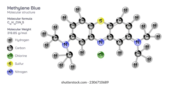 Kimyasal özellikler : Metilen mavisi, moleküler formülü C16H18N3SCl olan heterosiklik aromatik bir kimyasal bileşiktir. Biyoloji ve kimya gibi bir dizi farklı alanda birçok kullanıma sahiptir. Oda sıcaklığında, suda çözündüğünde mavi bir çözelti veren katı, kokusuz, koyu yeşil bir toz olarak görünür. Hidratlı form, metilen mavisi molekülü başına 3 molekül su içerir. Metilen mavisi, metil mavisi, başka bir histoloji boyası, yeni metilen mavisi veya genellikle pH göstergeleri olarak kullanılan metil menekşeler ile karıştırılmamalıdır. Kullanımlar : Metilen Mavisi, %1 w/v sulu çözelti, farklı boyama prosedürlerinde boya olarak kullanılır, yani. Wright’ın lekesi ve Jenner’ın lekesi. Aynı zamanda bir gösterge ve ilaç görevi görür. Ayrıca, mikroskop altında veya bir jelde RNA ve DNA’yı incelemek için kullanılır. Analitik kimyada redoks göstergesi olarak yaygın olarak kullanılır. Sülfür analizinde de kullanılır. Tanım : ChEBI: Karşı iyon olarak 3,7-bis(dimetilamino)fenotiazin-5-ium’a sahip bir organik klorür tuzu. Antioksidan, antimalarial, antidepresan ve kardiyoprotektif özellikler de sergileyen, yaygın olarak kullanılan bir boya. Genel açıklama : Metiltioninyum klorür olarak da bilinen metilen mavisi, fotoaktif bir fenotiazin boyasıdır. Gram pozitif ve Gram negatif bakterilere karşı etkili olan küçük moleküler ağırlıklı bir boyadır. Tehlike : Yutulması halinde zehirlidir. Biyolojik aktivite : Biyolojik leke ve redoks göstergesi. Tau filaman oluşumunu engeller (IC50 = 1,9 μ M). Ayrıca çözünür guanilat siklazı inhibe eder. Biyokimya/fizyol Eylemleri Metilen mavisi (MB) oldukça tanınan bir histolojik boyadır. Mikrobiyoloji ve farmakolojide hayati bir rol oynar. Canlı organizmaların boyanmasında ve methemoglobinemi tedavisinde kullanılmıştır. MB, 664nm’de maksimum emilim sergiler. Metilen mavisine maruz kalma, insanlarda kalp atış hızında artış, kusma, şok, Heinz vücut oluşumu, siyanoz, sarılık, kuadripleji ve doku nekrozu gibi çeşitli sağlık tehlikelerine yol açar. Klinik Kullanım : Metilen mavisi, 3,7-bis(dimetilamino)-fenazationiumklorürdür (Urised). Bileşik, suda (1:25) ve alkolde (1:65) çözünen metalik bir görünüme sahip koyu yeşil kristalli bir toz halinde bulunur. Metilen mavisi, onu sistit ve üretrit tedavisinde faydalı kılan zayıf antiseptik özelliklere sahiptir. Metilen mavisinin etkisinin bakteriyostatik olduğu kabul edilir. Bileşik idrarı ve dışkıyı mavi yeşile boyar. Güvenlik profili : Yutulması, intraperitoneal, intravenöz ve subkutan yollarla zehirlenmesi. İnsan sistemik etkileri: siyanoz, kan değişiklikleri. Deneysel üreme etkileri. Mutasyon verileri bildirildi. Ayrıştırmak için ısıtıldığında çok zehirli NOx, SOx dumanları yayar. Veteriner İlaçları ve Tedavileri : Metilen mavisi öncelikle geviş getiren hayvanlarda oksidatif ajanlara (nitratlar, kloratlar) ikincil methemoglobineminin tedavisinde kullanılır. Ayrıca siyanür toksisitesi için ara sıra ek veya alternatif tedavi olarak kullanılır. İntraoperatif metilen mavisi ayrıca, cerrahi olarak çıkarılmasına veya hayvanın prognozunun belirlenmesine yardımcı olmak için köpeklerde pankreasın adacık hücreli tümörlerini tercihen boyamak için kullanılır. Arıtma Yöntemleri : Klorürü 0.1M 664 2HCl’den (16mL/g) kristalleştirin, kristaller santrifüjleme ile ayrıldı, soğutulmuş EtOH ve dietil eter ile yıkandı ve vakum altında kurutuldu. %50 sulu EtOH’den kristalleştirin, mutlak EtOH ile yıkayın ve 50-55o’de 24 saat kurutun. Ayrıca *benzen/MeOH’den (3:1) kristalize edilmiştir. Ticari bir konsantre sulu çözeltiden NaCl ile tuzlandı, sonra sudan kristalleştirildi ve 100o’de etüvde 8-10 saat kurutuldu.