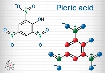 Görünüm] Pikrik asit, soluk sarı, kokusuz bir katıdır. Genellikle %10-20 oranında su çözeltisi halinde bulunur. Islak tutulmalıdır; kristal formu oldukça kararsızdır. Kuru kristal formu, hızlı ısıtma veya mekanik şok altında patlayıcıdır. [Kararlılık] Kararlılık Kararsızdır; darbe, ısıtma veya öğütme durumunda patlayabilir. Kuru haldeyken son derece yanıcıdır. Kuru haldeyken patlayabilir – her zaman ıslak tutun. Su içeriğini %20’nin üzerinde tutun. Yanıcıdır. Güçlü oksitleyici maddeler, bazlar, çoğu yaygın metal, amonyak ve güçlü indirgeyici maddelerle uyumsuzdur. Şoktan, sürtünmeden ve ısıdan kaçının. Reaksiyon sonucu oluşan bileşikler. [Başlıca Uygulama Alanları] Patlayıcılar, güç devreleri, enerji malzemeleri, sıvılaştırılmış gaz yakıtları, ince filmler, enerji üretimi, piller, yakıt hücreleri, çelik, altın filmler, nanopowder, otomobiller için antifriz sıvısı, polimerizasyon inhibitörleri, deriden dövme silme, iltihap önleyici madde, neoplazm tedavisi. [Reaktivite Profili] %10’dan az olmayan su içeren ıslak pikrik asit (88-89-1), hem oksitleyici hem de indirgeyici maddelerle şiddetli reaksiyonlara girer. Alevle tutuşturulduğunda yanar ve miktarı az ise veya büyük miktarda ise ince bir tabaka halinde yayılırsa sessizce yanmaya devam eder. Kuru bileşik, şok veya ısıya maruz kaldığında patlayabilir. Islatma, patlama eğilimini önemli ölçüde azaltır. Birçok metal (bakır, kurşun, cıva, çinko, nikel, demir dahil) ile temas ettiğinde kolayca tuzlar oluşturur. Tuzlar, ısıya, sürtünmeye veya darbeye maruz kaldıklarında hassas patlayıcılardır. Beton zeminlerle temas, sürtünmeye duyarlı patlayıcı kalsiyum pikrat oluşturabilir. Metalik çinko veya kurşunla temas, patlamaya neden olabilir. Amonyak, aminler ve hidrokarbonlarla kompleksler içeren tuzlar daha az hassastır. [Sağlık Tehlikesi] Pikrik aside maruz kalma, hayvanların ve insanların derisinde alerji, dermatit, tahriş ve hassasiyet gibi çeşitli olumsuz etkilere neden olur. Pikrik asidin vücut tarafından emilmesi baş ağrısı, ateş, bulantı, ishal ve komaya yol açar. Yüksek konsantrasyonlarda pikrik asidin eritrositlere, böbreklere ve karaciğere zarar verdiği bilinmektedir. [İlk Yardım] Bu kimyasal göze temas ederse, kontakt lensleri derhal çıkarın ve en az 15 dakika boyunca, ara sıra üst ve alt göz kapaklarını kaldırarak gözleri yıkayın. Derhal tıbbi yardım alın. Bu kimyasal cilde temas ederse, kirlenmiş giysileri çıkarın ve derhal sabun ve suyla yıkayın. Derhal tıbbi yardım alın. Bu kimyasal solunursa, maruziyetten uzaklaştırın, solunum durmuşsa suni solunum (canlandırma maskesi dahil evrensel önlemler kullanarak) ve kalp atışı durmuşsa CPR uygulayın. Derhal bir sağlık kuruluşuna götürün. Bu kimyasal yutulursa, tıbbi yardım alın. Bol miktarda su verin ve kusturun. Bilinci yerinde olmayan bir kişiyi kusturmayın. [Uyumsuzluklar] Kuru haldeyken patlayıcıdır. Oksitleyici ve indirgeyici maddelerle şiddetli reaksiyona girer. Ayrışması için hava veya oksijen gerekmez. Sıva ve betonla temas ettiğinde şoka duyarlı bileşikler oluşabilir. Sulu çözelti kristalleştiğinde patlayıcı bir karışım oluşur. Isı, şok, sürtünme veya darbe sonucu patlayıcı şekilde ayrışabilir. Bakır, kurşun, çinko ve diğer metaller veya tuzları, başlatıcı olan ve bu kimyasaldan çok daha hassas olan başka tuzlar oluşturabilir. Metalleri aşındırır. [Yangın Tehlikesi] Pikrik asit yüksek patlayıcıdır. TNT kadar kararlıdır ve patlayıcı ayrışmaya karşı hassasiyeti de TNT kadar yüksektir. Birçok metal ve bazla reaksiyona girerek, son derece hassas patlayıcı bileşikler olan metal pikratlar oluşturur. Kuru haldeki demir(III), bakır(II) ve kurşun metal pikratları, PETN kadar hassastır. Su ile ıslatıldığında hassasiyeti azalır. 300°C’nin (572°F) üzerinde ısıtıldığında patlar. [Toksisite değerlendirmesi] Pikrik asit maruziyetinin ana sonucu metabolik ve solunum asidozu olarak kabul edilir ve bildirilen ölümlerin tipik nedenidir. Mitokondriyal metabolizmanın bir ayırıcısı olan pikrik asit, eritrositleri tahrip edebilir, gastroenterit, hemorajik nefrit ve akut hepatite neden olabilir. N-asetil türevine indirgenmesi de doğuştan gelen toksisitesinde rol oynayabilir.