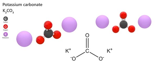 Kimyasal özellikler Potasyum karbonat, gübre, cam, seramik, patlayıcı, sabun, kimyasal ve yün işlemlerinde kullanılan temel sulu çözeltileri oluşturan beyaz, kristalli bir tuzdur. Bir zamanlar potas olarak anılan ana bileşikti, ancak bugün terim yalnızca potasyum karbonat için değil, birkaç potasyum tuzu için ayrılmıştır. Gübre endüstrisinde potas, potasyum karbonat yerine potasyum okside, K2O’ya karşılık gelir. Pearlash, safsızlıkları gidermek için potasın ısıtılmasıyla yapılan daha saf bir potas şeklidir. Kullanımlar : Potasyum karbonat, gübrelerde, sabunlarda, yapıştırıcılarda, dehidratasyon ajanlarında, boyalarda ve farmasötiklerde kullanılan inorganik potasyum tuzlarının (potasyum silikatlar, potasyum bikarbonat) kaynağı olarak kimya endüstrisinde kullanılmaktadır. Potasyum sodalı su yapmak için kullanılan potasyum karbonat, katılardan ziyade sıvı veya yarı katı olan yumuşak sabunlar üretir. Potasyum karbonatın diğer kullanımları, söndürücülerde yangın söndürücü olarak, kimyasal işlemler ve kirlilik kontrolü için bir CO2 emici olarak, kauçuk katkı maddelerinde bir antioksidan olarak ve farmasötik formülasyonlarda kullanımını içerir. Üretim yöntemleri : Potasyum karbonat, külden veya potasyum klorürün elektrolizi ile elde edilebilir. Başka bir yöntem, potasyum hidroksitin karbon dioksit ile reaksiyona sokulmasını içerir. Ortaya çıkan sıvı karbonat, suda yaklaşık %50 potasyum karbonat içerir. Ancak %70’in üzerinde potasyum karbonat içeren katı ürün pahalıdır ve yalnızca belirli asitli toprak türleri için uygundur. Ek olarak, kostik potasyumun karbon dioksit ile nötralize edilmesi de potasyum karbonat verir. Genel açıklama : Potasyum karbonat (K2CO3), suda çözünen (etanolde çözünmeyen) güçlü bir alkali çözelti oluşturan beyaz bir tuzdur. Potasyum hidroksitin karbondioksit ile emici reaksiyonunun ürünü olarak yapılabilir. Nemi emmek için büyük bir kapasite sunar. Metalleri ve dokuları aşındırır. Yoğunluk 12,8 lb/gal. Sabun yapımında, diğer potasyum bileşiklerinde, sıvı gübrelerde kullanılır. Reaktivite Profili : Potasyum karbonat, asitleri ekzotermik olarak nötralize ederek tuzlar ve su oluşturur. Metalin oksitlerini veya hidroksitlerini oluşturmak için belirli metallerle (alüminyum ve çinko gibi) reaksiyona girer ve gaz halinde hidrojen üretir. Polimerize olabilen organik bileşiklerde, özellikle epoksitlerde polimerizasyon reaksiyonlarını başlatabilir. Amonyum tuzları, nitrürler, halojenli organikler, çeşitli metaller, peroksitler ve hidroperoksitlerle yanıcı ve/veya zehirli gazlar üretebilir. Bir katalizör görevi görebilir. Yaklaşık 84°C’nin üzerinde ısıtıldığında sakaroz dışındaki indirgeyici şekerlerin sulu çözeltileriyle reaksiyona girerek toksik seviyelerde karbon monoksit geliştirir. Sağlık tehlikesi : ZEHİRLİ; malzemenin solunması, yutulması veya ciltle teması ciddi yaralanmalara veya ölüme neden olabilir. Erimiş madde ile temas ciltte ve gözlerde ciddi yanıklara neden olabilir. Herhangi bir cilt temasından kaçının. Temas veya solumanın etkileri gecikebilir. Yangın tahriş edici, aşındırıcı ve/veya zehirli gazlar üretebilir. Yangın kontrol veya seyreltme suyundan çıkan akış aşındırıcı ve/veya zehirli olabilir ve kirliliğe neden olabilir. Güvenlik profili : Yutulması halinde zehir. Güçlü bir yakıcı. KCO, klor triflorür, magnezyum ile uyumsuz. Mutasyon verileri bildirildi. Ayrışmaya kadar ısıtıldığında zehirli K2O dumanları yayar. Yangın tehlikesi : Yanmaz, maddenin kendisi yanmaz ancak ısıtıldığında aşındırıcı ve/veya zehirli dumanlar üretmek üzere ayrışabilir. Bazıları oksitleyicidir ve yanıcı maddeleri (tahta, kağıt, yağ, giysi vb.) tutuşturabilir. metallerle temas yanıcı hidrojen gazı gelişebilir. Kaplar ısıtıldığında patlayabilir.